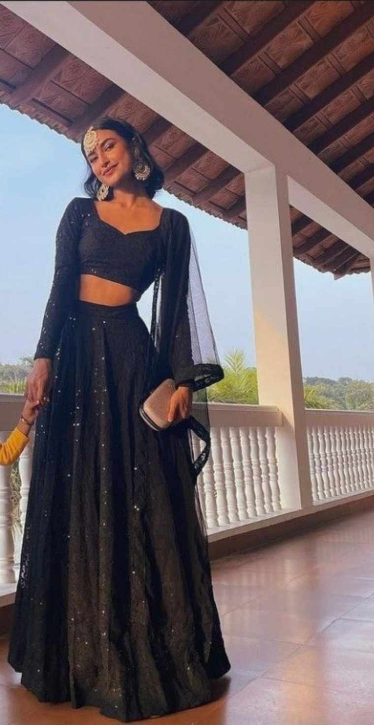 And amidst all of this, was a lady, nearly 5'6 feet tall, dressed in a black coloured simple lehenga, looking beautifully pleasing to the eye.